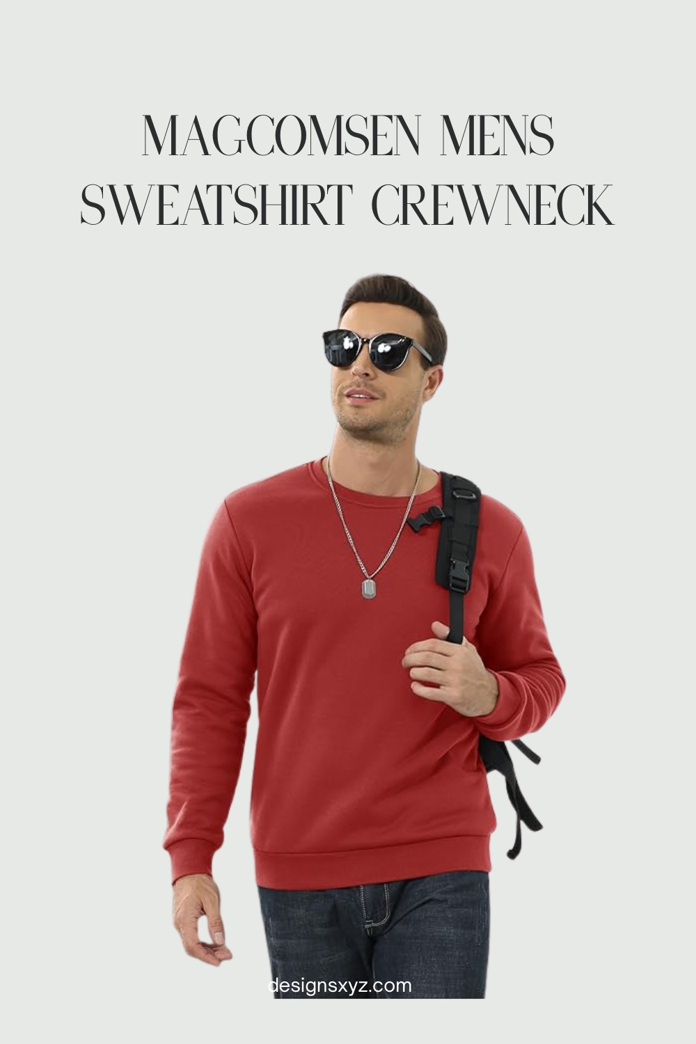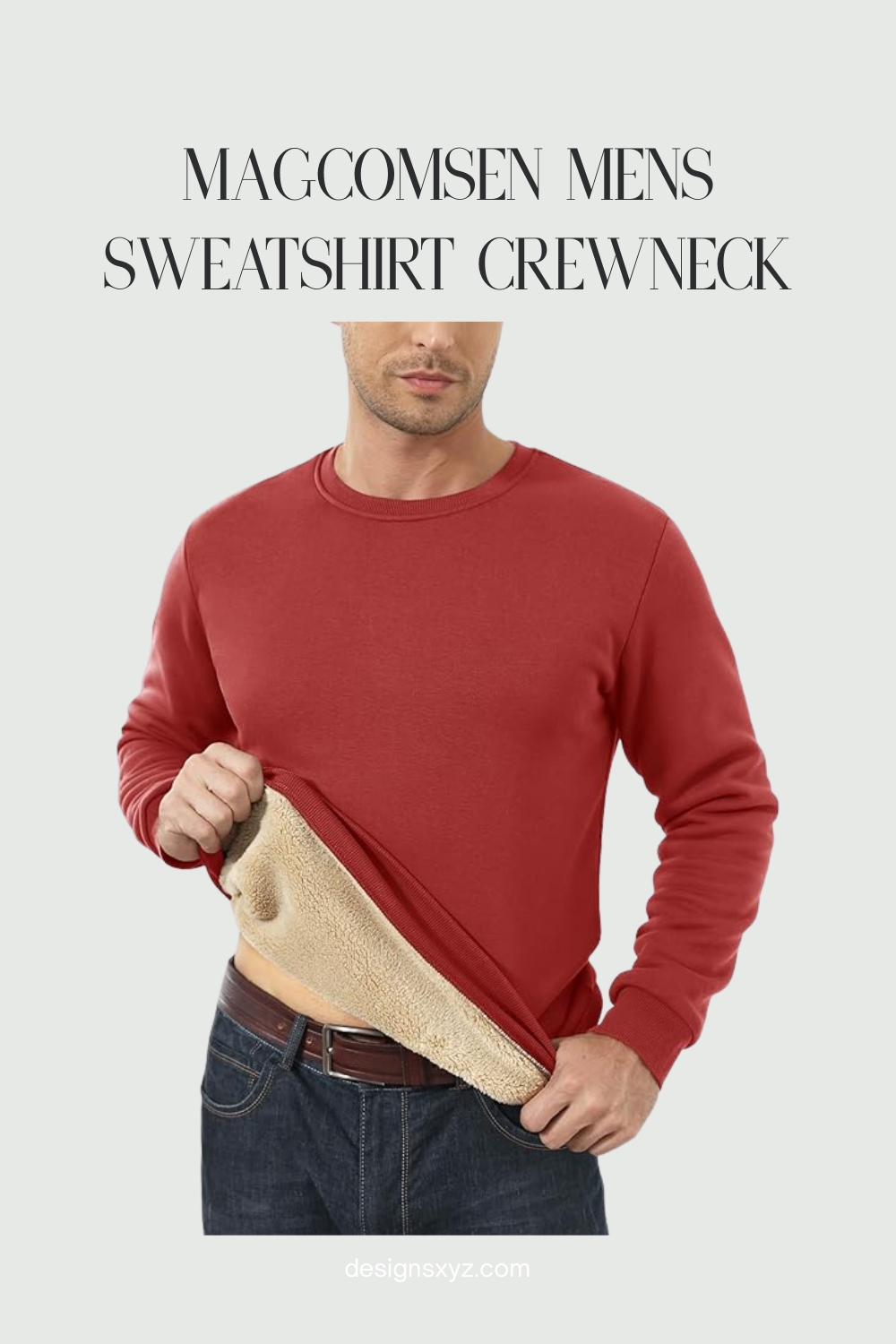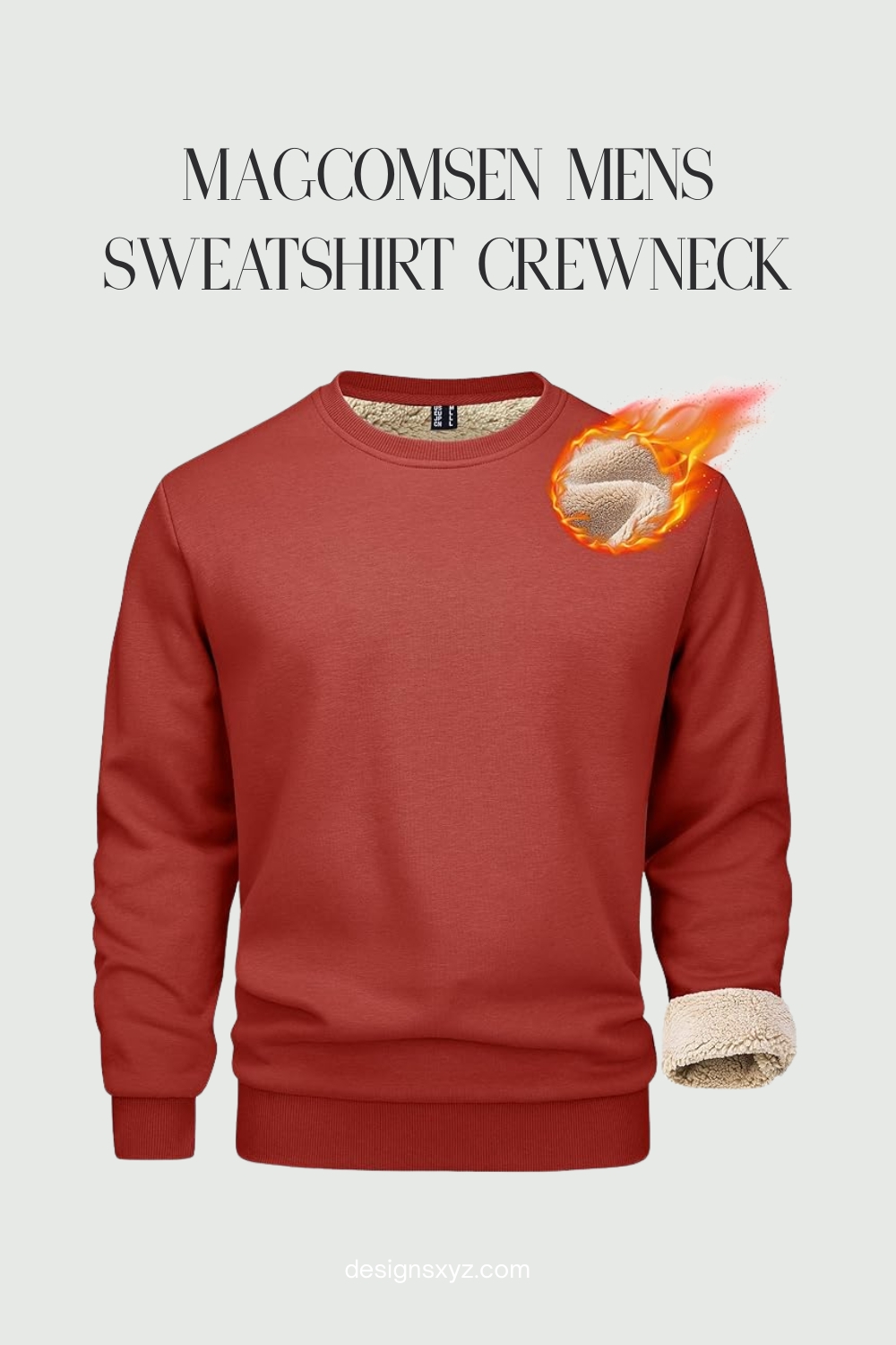 Stay cozy this winter with the MAGCOMSEN Mens Sherpa Lined Sweatshirt. Made from soft fleece fabric 95% cotton 5% spandex this warm crewneck pullover features long sleeves ribbed cuffs and hem and smooth stitching for a comfortable fit. Perfect for layering with jackets jeans or pants it keeps you warm while maintaining a stylish casual look. Easy care with machine wash and tumble dry low. Ideal for everyday wear or chilly outdoor activities.